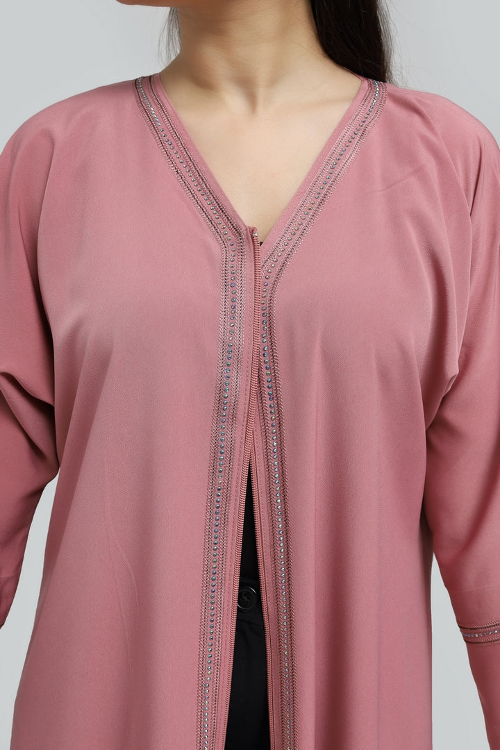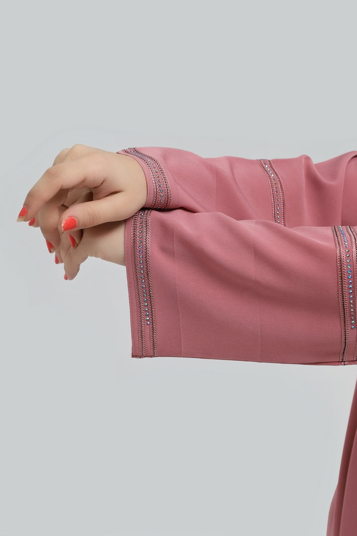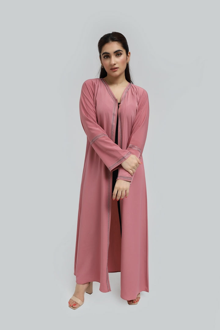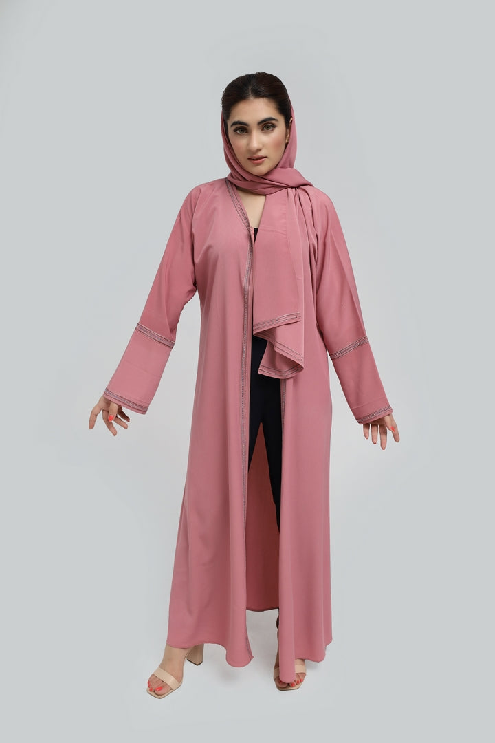 Subtle tonal stitch detailing along the cuffs and front edges adds just the right amount of texture without overpowering the simplicity of the design. The abaya features a tailored cut with a relaxed fit, making it easy to layer over both casual and formal outfits. Whether you're attending a daytime gathering, traveling, or styling for Ramadan evenings, Raya makes a soft yet striking impression.